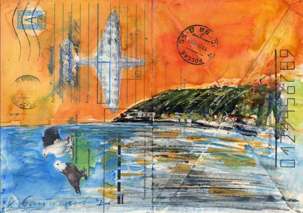 Константин Батынков. из серии «КОНВЕРТЫ». 1991. бум., акрил. 16х22см.