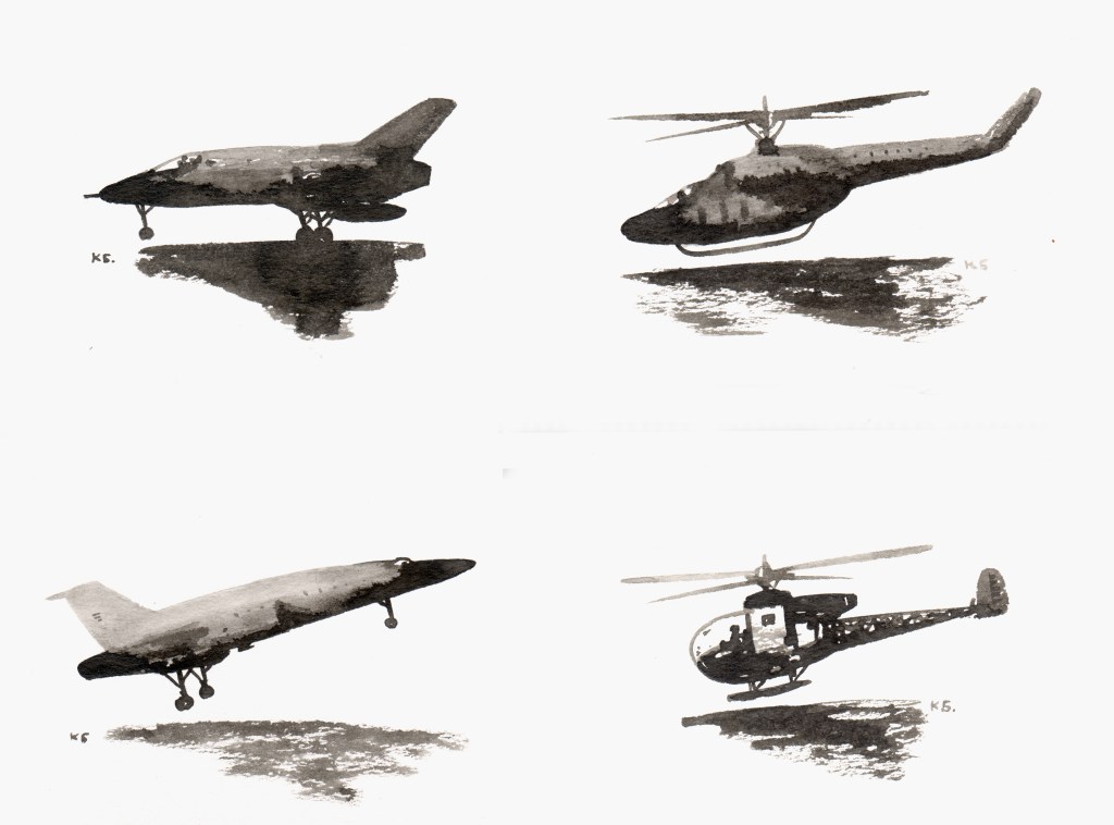 Словосочетание «свой-чужой» позаимствовано мной из служебного лексикона войск ПВО. В самых общих чертах, этот проект об авиации: самолётах, вертолётах и …парашютистах. Но это в самых общих чертах, а по сути проект совсем о другом. В этих работах нет гнетущих комплексов и одиозного пафоса. Проект чрезвычайно лёгок (пожалуй, единственное, что сближает его с авиацией)… и изящен. Я просто нарисовал массу картинок, вот и всё. Ассоциируемое с авиацией, в данном случае, — частность, непосредственно с авиацией несоотносимая. Здесь как бы иной нерв, иная заряженность, иная тема. Действительно, вместо самолётов могло быть что угодно. Авиация в моих работах во всём своём огромном арсенале — своеобразная начинка компьютерной игры в войнушку, взаправдашность которой виртуальна. Это некая игра. Нет вопросов «что?» или «как?», я остаюсь за пределами мучительного поиска новых средств выражения. Вчера я с сотоварищами лепил снеговиков, потом разрисовывал детские книжки-раскраски, лежал с фотоаппаратом в московской слякоти, созерцая Тибет сквозь редкие нынче сугробы, в коих чуть позже обнаружил груду мусора, обрамив который в шикарные буржуйские рамочки, заявил, что это — искусство. Сегодня великорусская тоска повернула меня к самолётам, вертолётам и, недолго думая, половину из них по-просту «замочил». Понарошку. А искусство – это вообще понарошку, и в него играют. А «свой-чужой» — не более, чем условности этой игры.