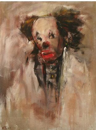 Каждая моя картинка – стопроцентный цирк. Кто-то куда-то летит, бежит, падает… У меня в каждой второй картине натянута проволочка, и по ней идёт человечек. Ну, вот смотри, написано «Баррикады», а там сплошные эквилибристы, один висит, другой идёт по канату. Я рисовал цирк всю жизнь, ну, по крайней мере, регулярно возвращался к этой теме. На самом деле цирк нас окружает, куда не посмотри.