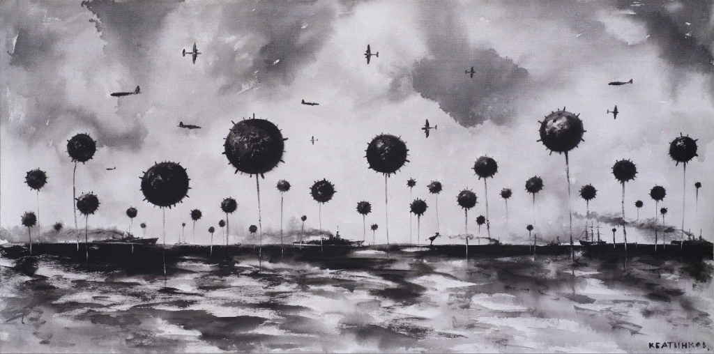 Был один просто супер радиоспектакль, по мотивам «Бегущих по волнам» Грина. Такой радиоперепев. Я его слушал раз десять. Рисовал и одновременно слушал. Не сейчас, давно, но я хорошо всё помню. И всё же у меня не перепев Грина, я и назвал по-другому, хотя не без оглядки, ведь у меня тоже романтика, тоже море. У меня полно всяких мотивов, масса самолётов и вертолётов. Но это не главное.