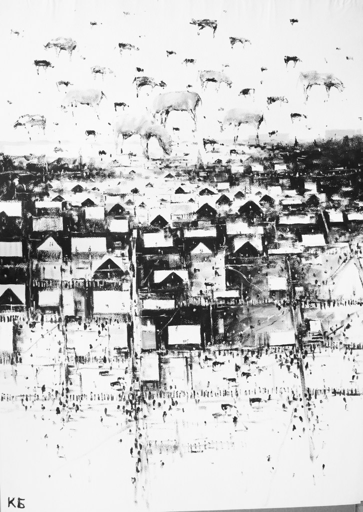 «Всюду жизнь», 2018-19, винил, акрил, 145х106см.