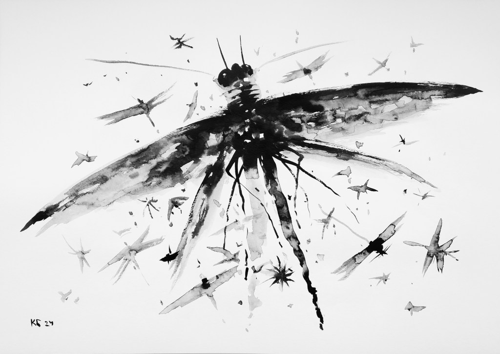 Содержательный план выставки, состоящей из полусотни произведений, сообразован из очень личного восприятия и трактовки заявленной темы. Перед зрителем разворачивается особый мир кровососущих, порхающих и ползающих, запечатлённых в неожиданной версии «Энтомологического атласа».