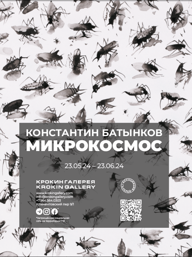 Новая серия графики Константина Батынкова озаглавлена «Микрокосмос». При всех нюансах толкования укоренённого в античности понятия, автор, известный своими космическими «одиссеями», сужает пространство очередного сценария, перенося акцент с «парада планет» на «планету насекомых».